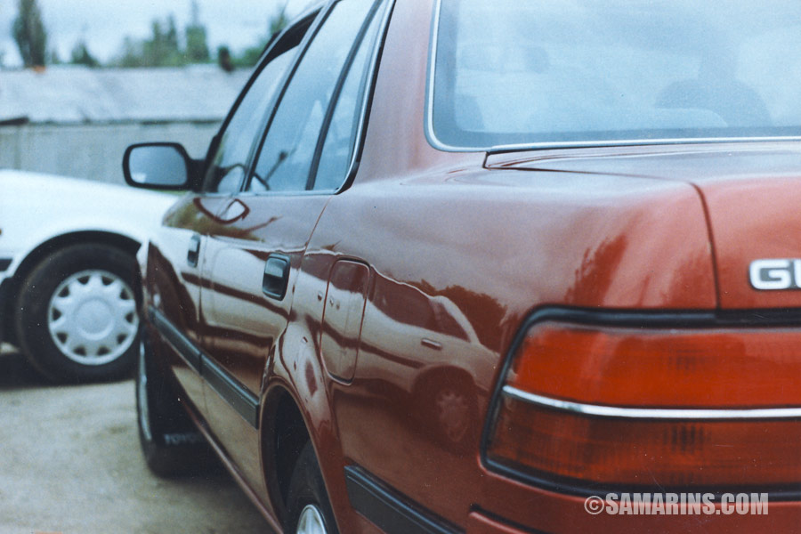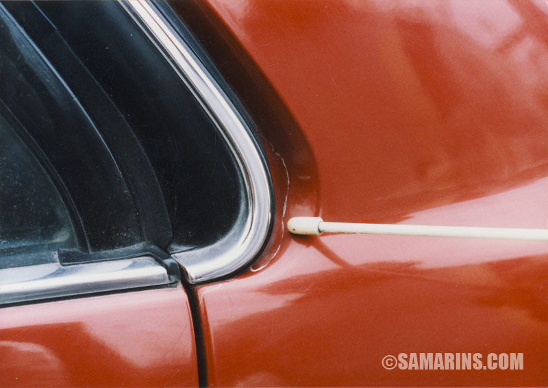 See how different body panels fit together. The hood, doors and the trunk, when closed should be properly aligned with other panels. Look at this car, the rear door is misaligned; there has been some body repair here. |