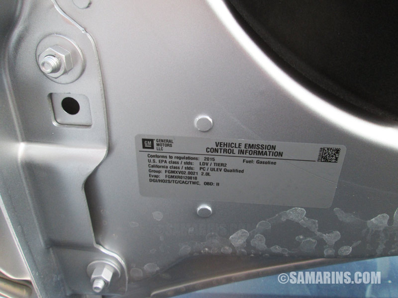 Many cars have a sticker attached to the hood. This car in the photo has an original sticker. If the sticker is missing or looks like it was re-attached, it's possible that the hood has been replaced. |