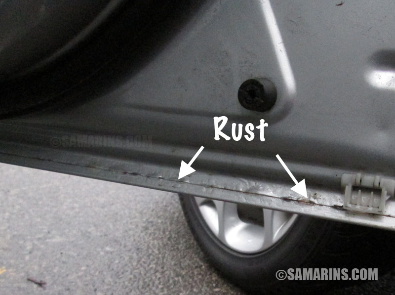 - Inspect a car body for signs of accident or rust repairs; see photos below.