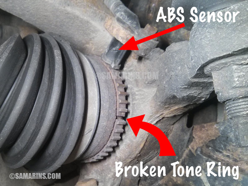 For example, in some cars, the tone ring that is built into the drive shaft can break like in this photo. In cases like this, the sensor may still be OK and only the tone ring, or if it doesn't come separately, a drive shaft may need to be replaced.
