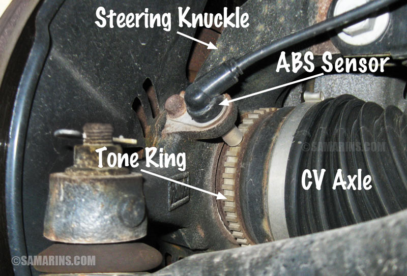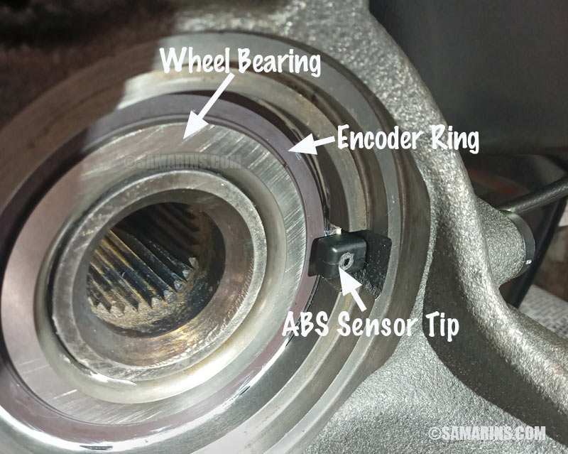 How the ABS sensor works: To produce a signal, a stationary ABS sensor is placed close to a ring that rotates together with the wheel. In many cars, it's an encoder ring that is a part of the wheel bearing side seal. Such a ring has built-in magnets that are placed at equal intervals.