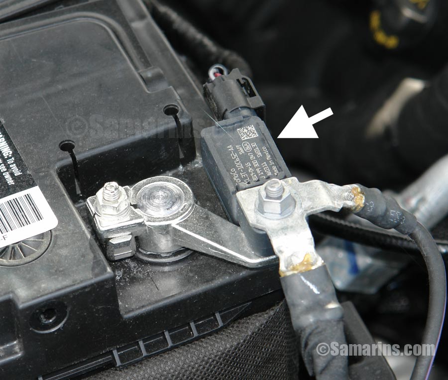 Many modern cars have a battery current sensor. It might also be called a battery management or monitor sensor, or simply a battery sensor. Often, it is installed on the negative battery terminal or on the cable.
