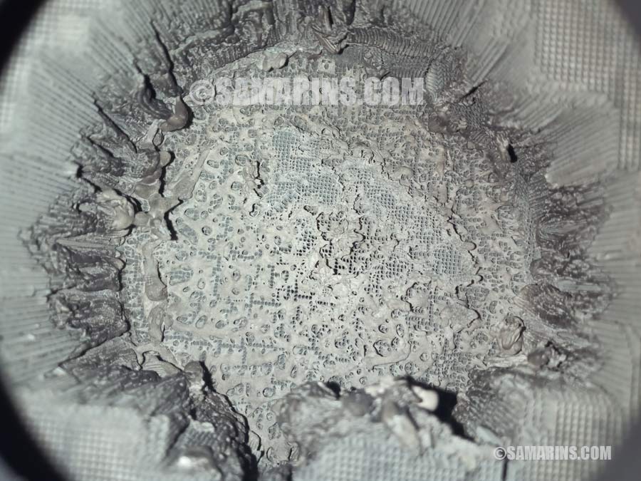 2. Clogging up of the catalytic converter. The photo on the left shows a clogged up catalytic converter from one of the cars we repaired. There are many reasons that can cause the catalytic converter to clog up, including bad gasoline, increased engine oil consumption, coolant leaks from the intake or a head gasket. Often the cat cloggs up in cars that are driven only for short trips.