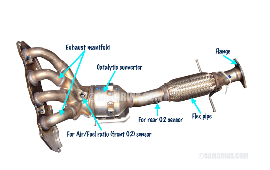 The catalytic converter is built inside the engine exhaust manifold or within the exhaust pipe close to the engine.