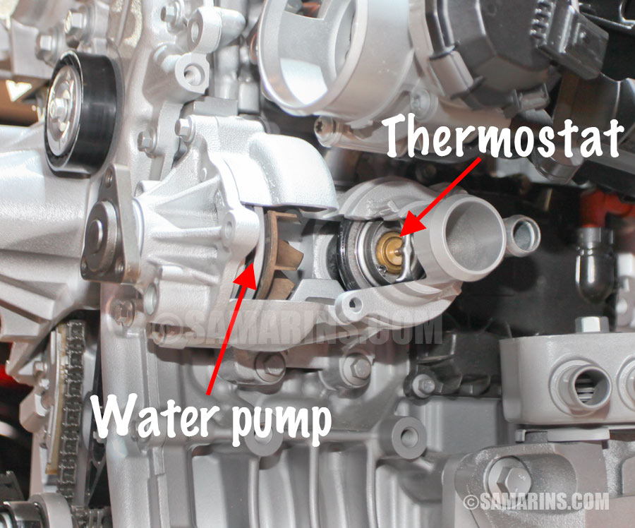 thermostat in a Ford 2.3L EcoBoost engine. This